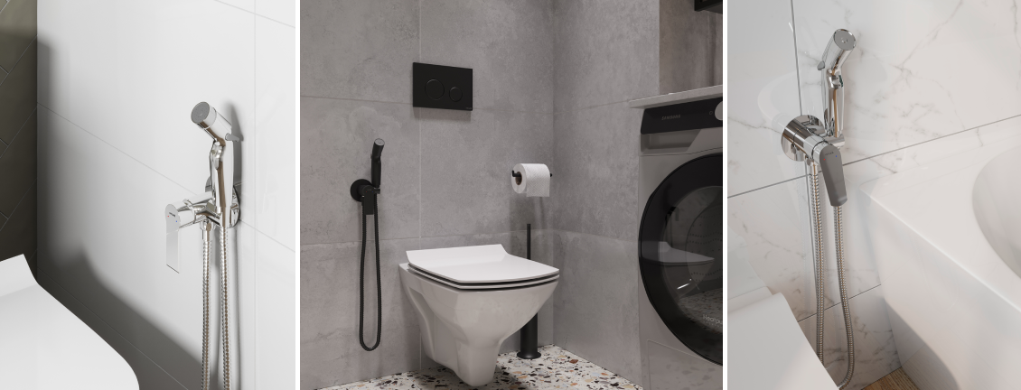 Практичным дополнением коллекций стали компактные гигиенические души, бренд Cersanit представил сразу несколько моделей: Moduo, Brasko, Brasko Black, Flavis.