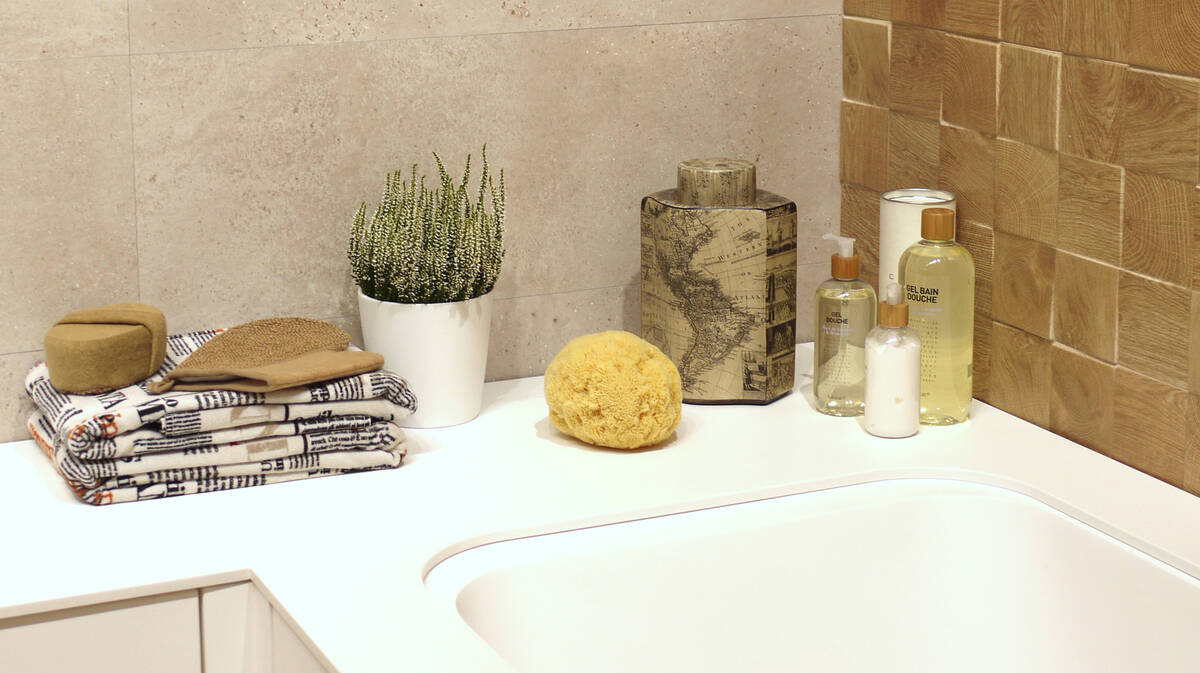 Элементы декора дают, помимо прочего, расставить яркие акценты. Например, сочных цветов экзотических лавок, узоров, тканей или предметов этнического стиля. Хорошо впишутся в интерьер небольшие предметы из необработанной «грубой» древесины. Если нет желания использовать резкие контрасты, можно подчеркнуть стиль ванной комнаты при помощи цветных полотенец или остановить свой выбор на плитке с оригинальными узорами.