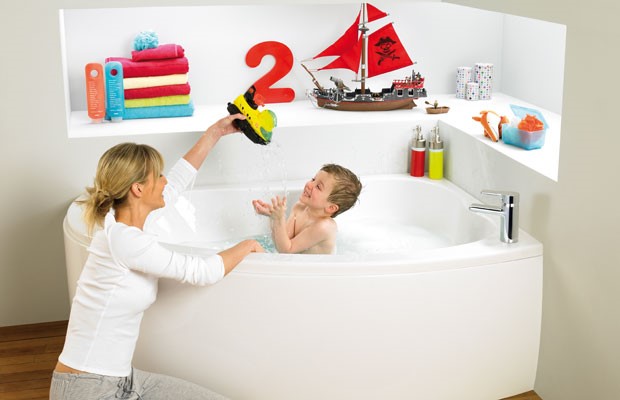 Даже в самой, казалось бы, неудобной ванной комнате, если применить немного фантазии и воображения, можно сделать в буквальном смысле детскую игровую! Этому может поспособствовать просторная угловая ванная, предоставляющая для маленьких исследователей обширную волнистую гладь, которую можно использовать для веселых игр во время приема ванны. Эргономика таких изделий позволяет обеспечить легкость установки, причем даже в тесных небольших помещениях.