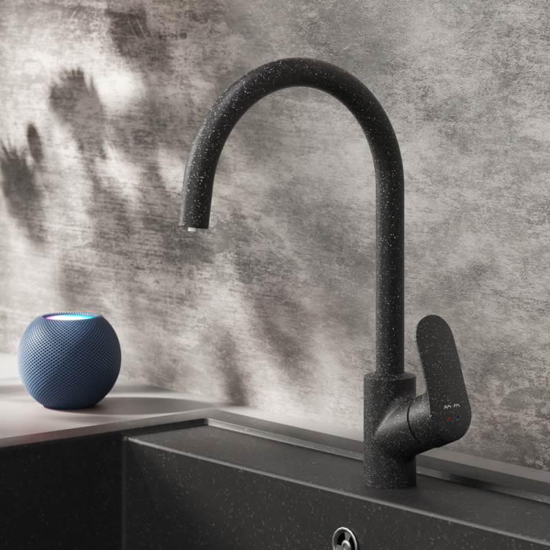 Также смесители различают по высоте излива - укороченные, стандартные и высокие. При выборе ориентируйтесь на глубину мойки. Так, при чаше в 16-18 см подойдет кран со средним или высоким изливом, а при большем показателе укороченные модели.