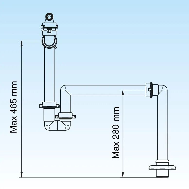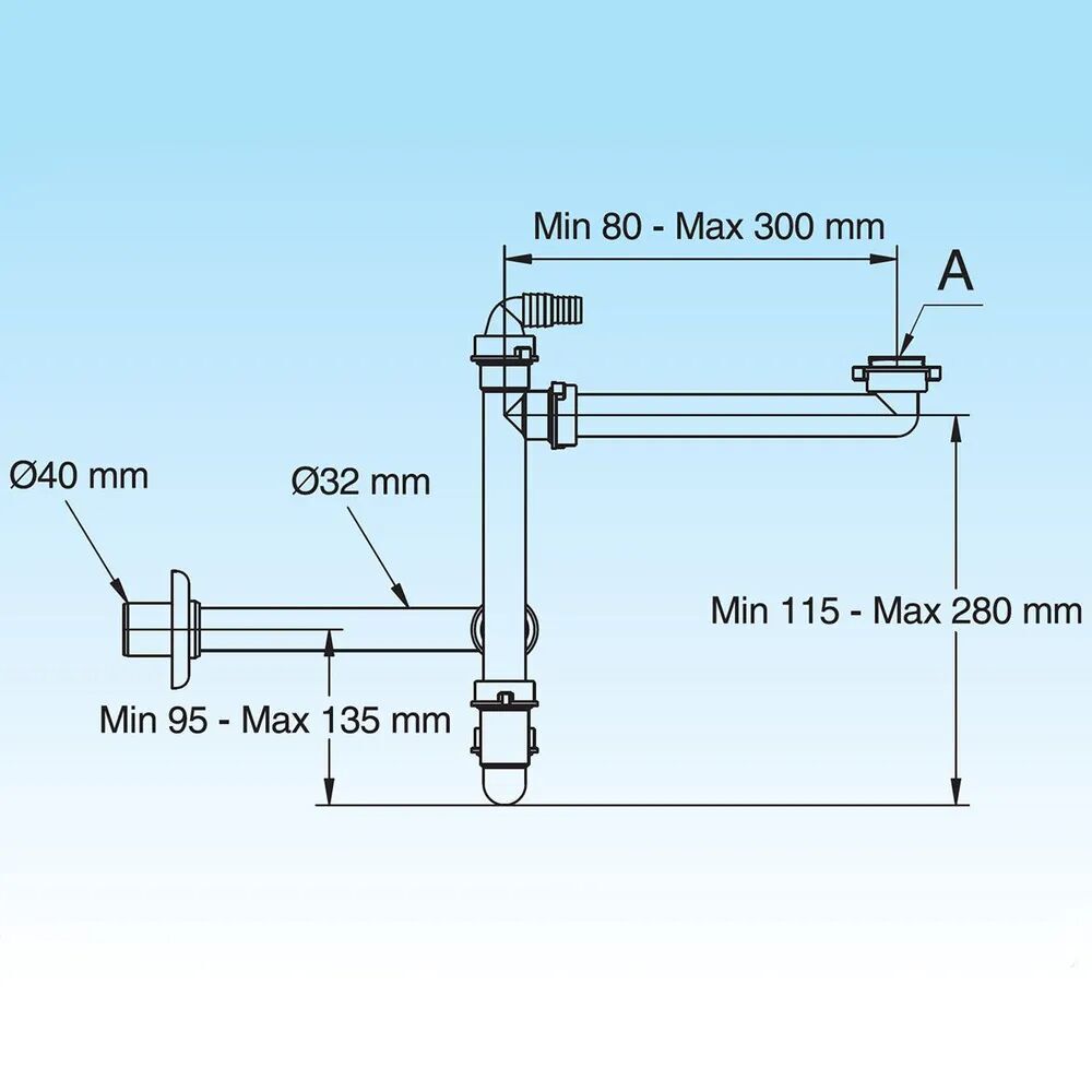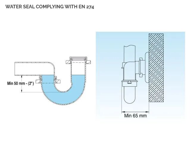 - Диаметр подключения к канализационной трубе 32-40 мм
