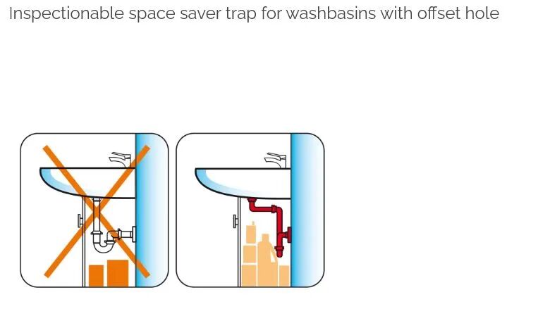 - Сифон для раковин с возможностью осмотра, экономии места, со смещенным отверстием