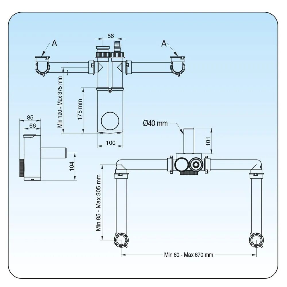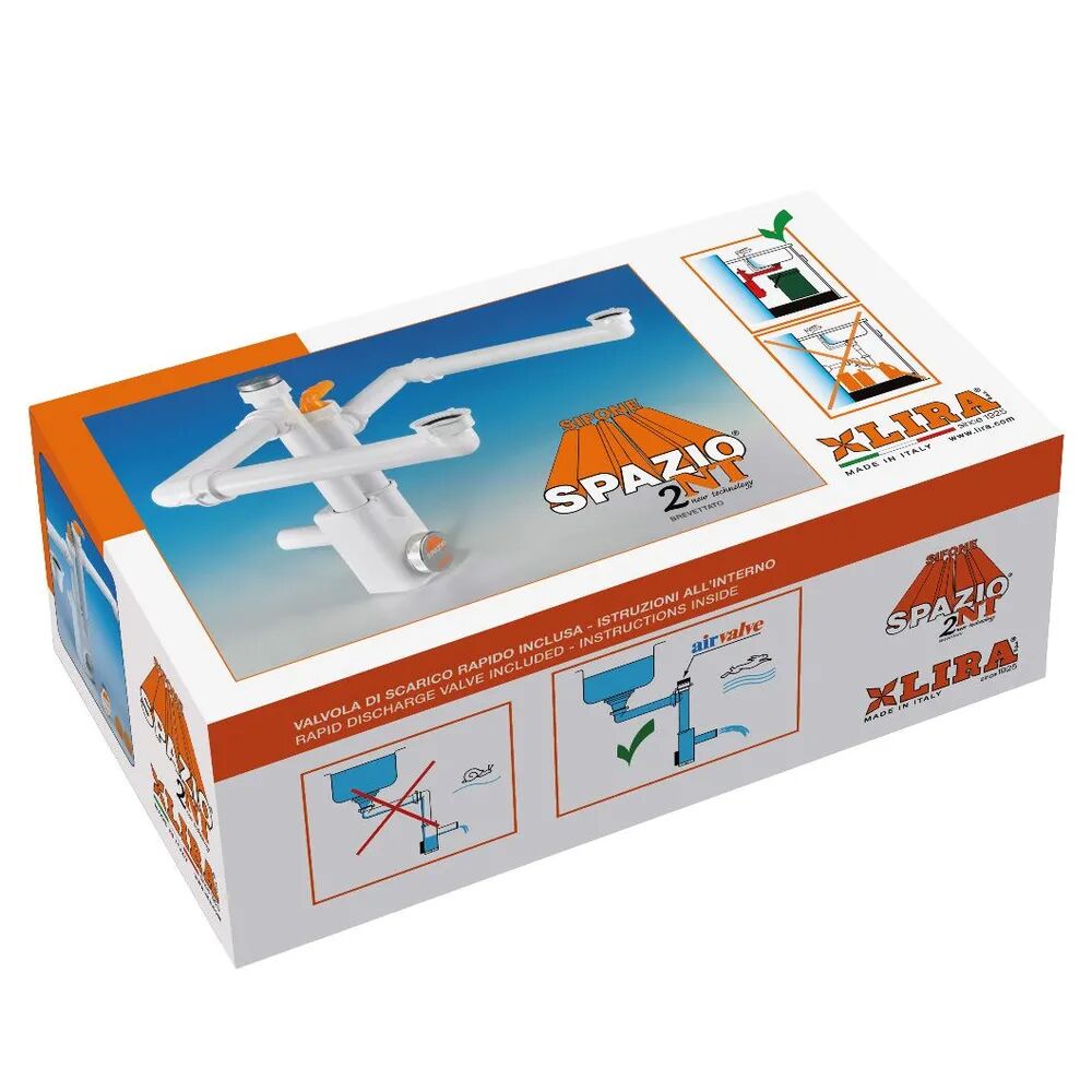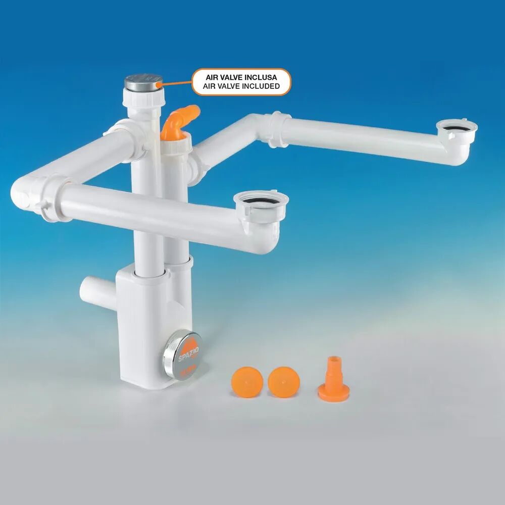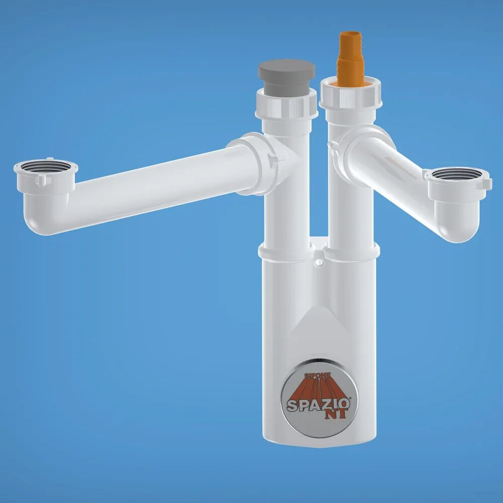 - Сифон предназначен для подключения кухонных моек, имеющих две раковины, к канализационной системе, для чего на данном сифоне присутствует двойной разборный выпуск