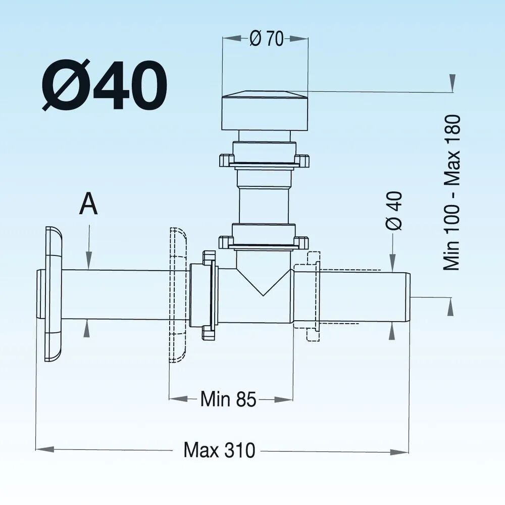 - Диаметр подключения 40 мм.