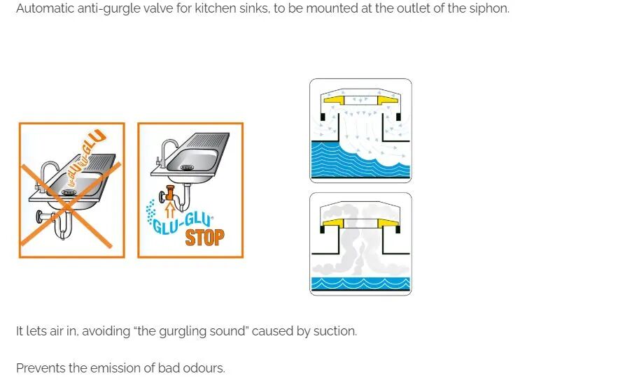 - Автоматический антибулькающий клапан для кухонных моек.