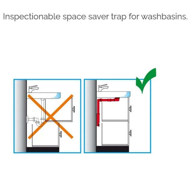 - Компактный сифон для умывальников. Конструкция сифона позволяет организовать отвод воды так, что обеспечивает экономию места внутри корпуса под раковиной.