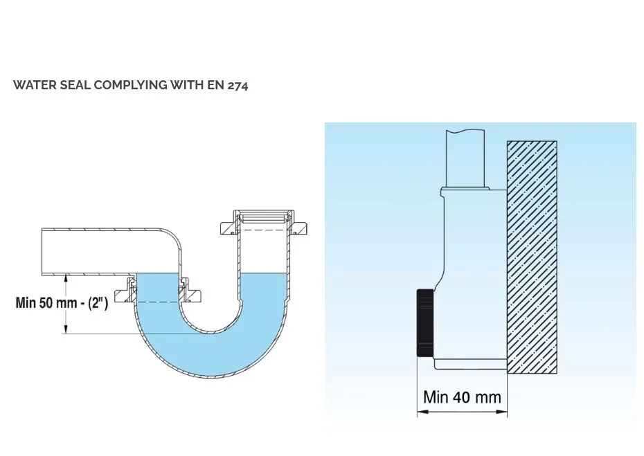- Диаметр подключения к канализационной трубе 32-40 мм.