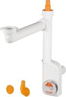 - Компактный сифон для моек с одной чашей. Конструкция сифона позволяет организовать отвод воды так, что обеспечивает экономию места внутри корпуса под мойкой